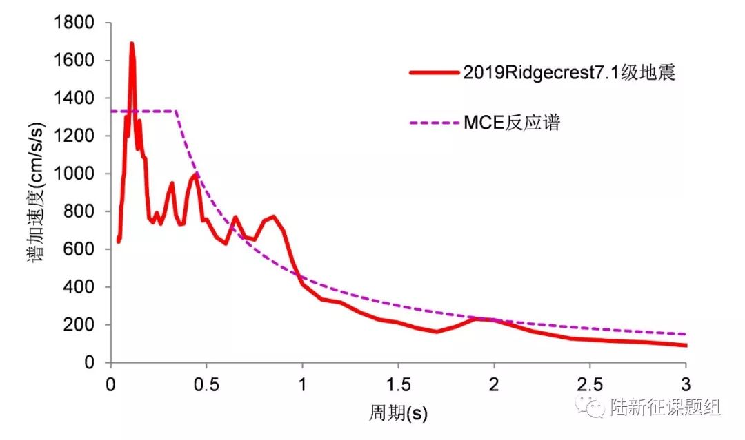 從圖5不難看出,本次地震引起的地面運(yùn)動(dòng)并未超過(guò)當(dāng)?shù)卦O(shè)防罕遇地震水平,在0.5s以下的短周期段(也是當(dāng)?shù)貑螌幼≌闹饕芷诙危?,比罕遇地震反?yīng)譜還差不少。所以,對(duì)本次美國(guó)7.1級(jí)地震的分析,基本上可以給出以下的結(jié)論: