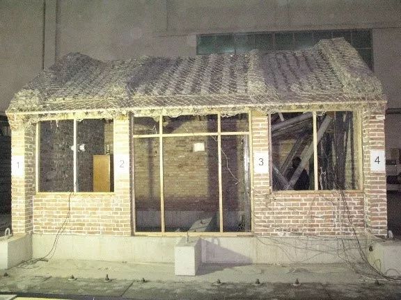 圖7單層三開(kāi)間農(nóng)村住宅磚木結(jié)構(gòu)振動(dòng)臺(tái)試驗(yàn)