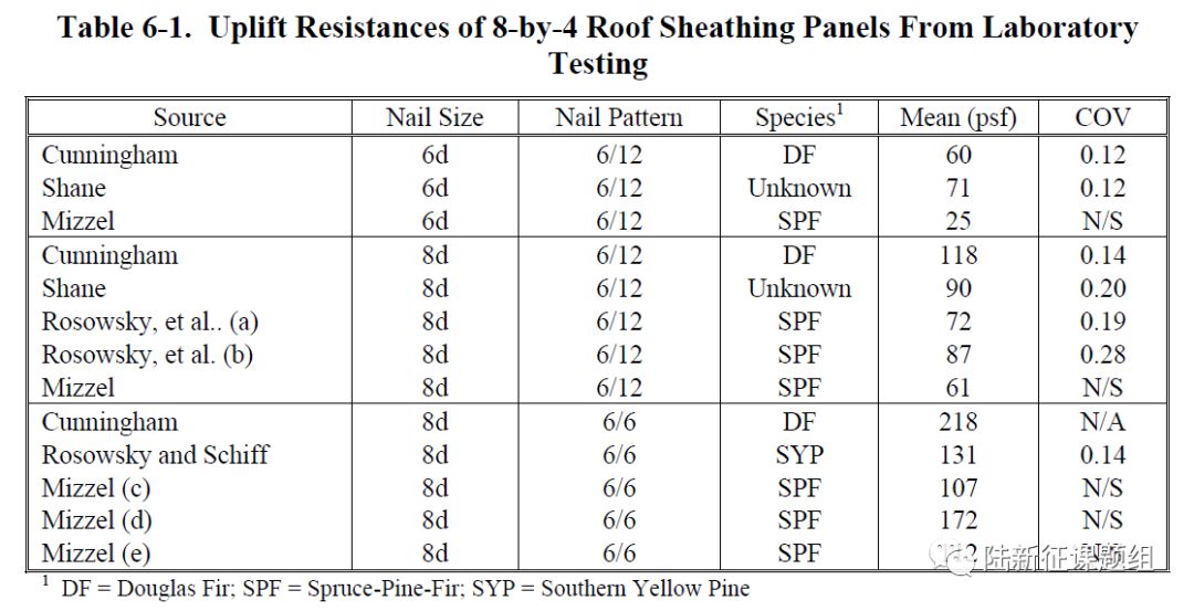 圖9 Hazus給出的部分屋面抗拔力試驗(yàn)數(shù)據(jù)