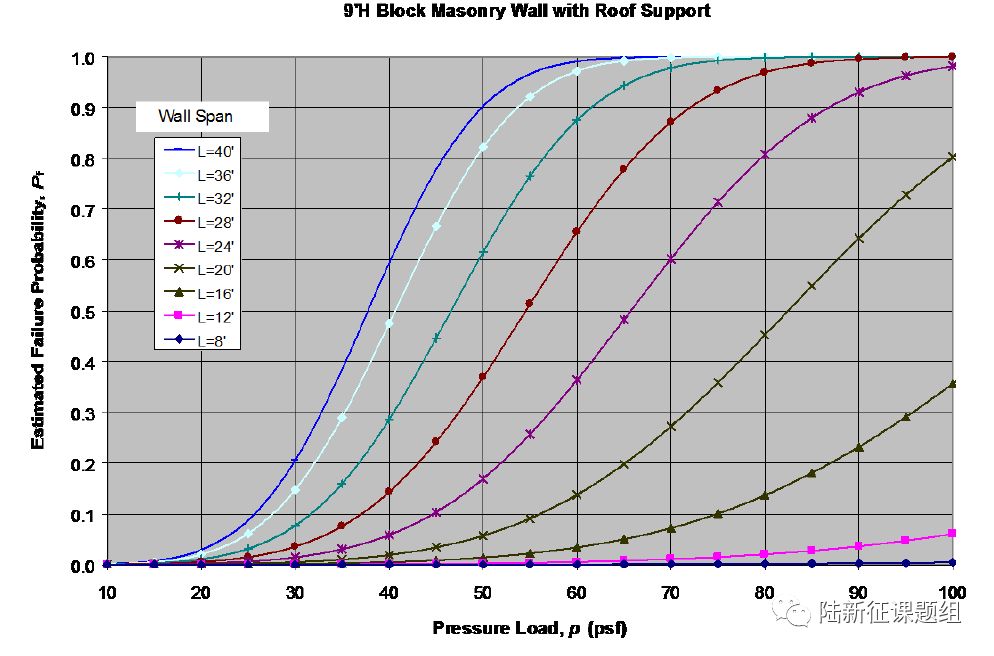 圖10 Hazus給出的部分墻表面砌塊抗風(fēng)能力易損性數(shù)據(jù)