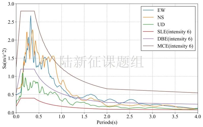 圖3 典型臺(tái)站典型記錄反應(yīng)譜