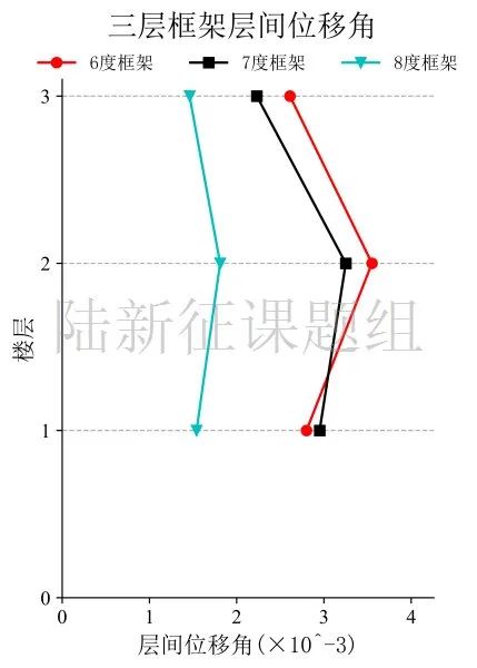 將典型臺(tái)站記錄輸入立面布置如圖76(a)所示的6度、7度和8度設(shè)防的典型三層鋼筋混凝土框架結(jié)構(gòu),得到其層間位移角包絡(luò)如圖6 (b)所示。