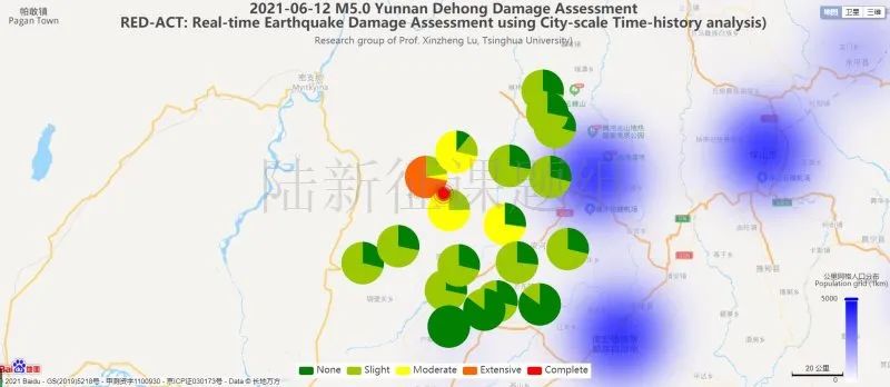 圖4 20210612云南德宏州盈江縣5.0級(jí)地震不同臺(tái)站地震記錄破壞力分布圖