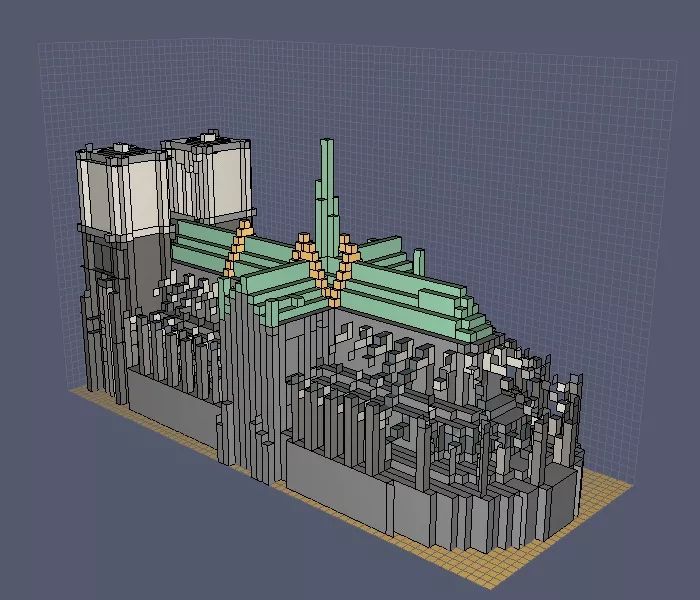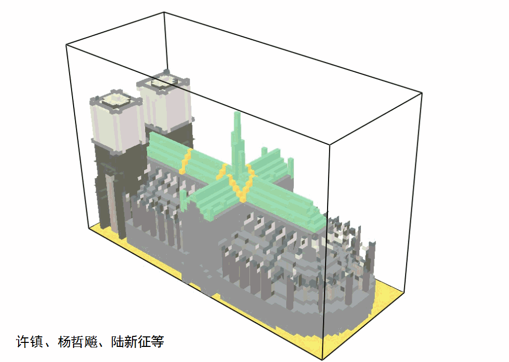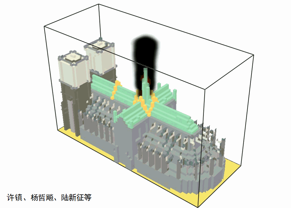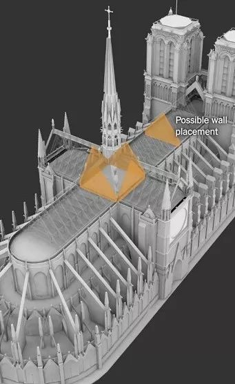 火災(zāi)流體力學(xué)計(jì)算軟件FDS計(jì)算得到的火災(zāi)蔓延結(jié)果如圖4所示。嗯,確實(shí),方案A設(shè)置防火墻后,火災(zāi)被有效隔斷在起火的塔尖底部,沒(méi)有進(jìn)一步蔓延到十字形屋頂上,巴黎圣母院的悲劇本是可以避免的。