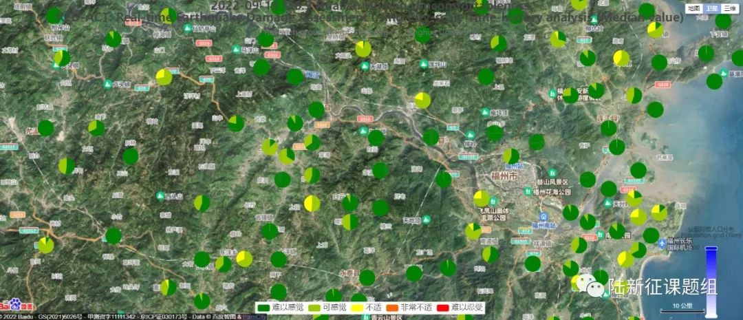 (深綠色代表“難以感覺”、淡綠色代表“可感覺”、黃色代表“不適”、橙色代表“非常不適”、紅色代表“難以忍受”)