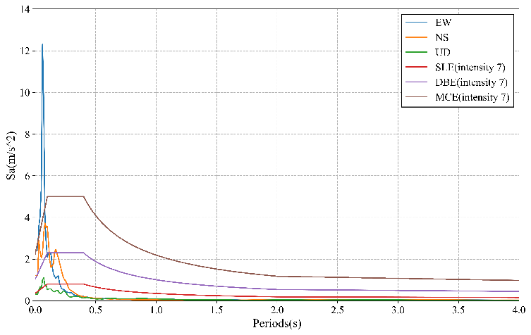 實(shí)測(cè)的儀器烈度雖然比通過(guò)震級(jí)來(lái)估算地面運(yùn)動(dòng)強(qiáng)度進(jìn)步了不少,但是它畢竟把一個(gè)復(fù)雜的地面運(yùn)動(dòng)過(guò)程簡(jiǎn)化成了一個(gè)峰值。因此,在某些情況下峰值可能就不能很好的反映世界的真實(shí)情況。而彈塑性時(shí)程分析把完整的時(shí)程記錄輸入到對(duì)象結(jié)構(gòu)中,可以更好地考慮地震動(dòng)的時(shí)域、頻域各特性。
