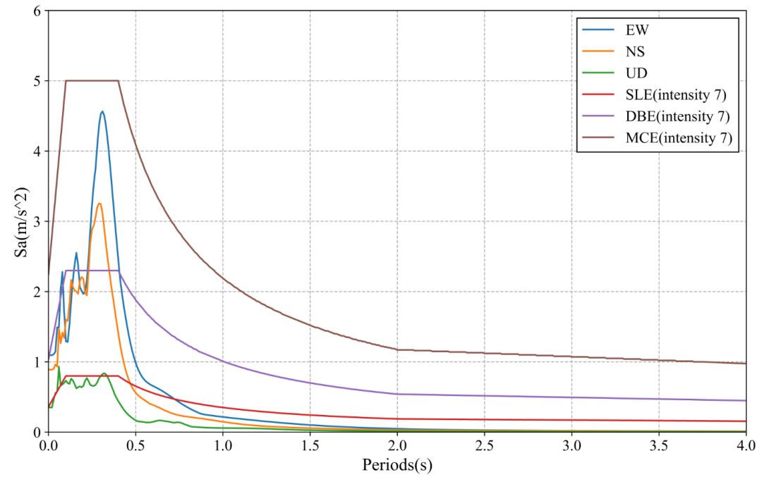 圖2 W3605臺(tái)站記錄反應(yīng)譜